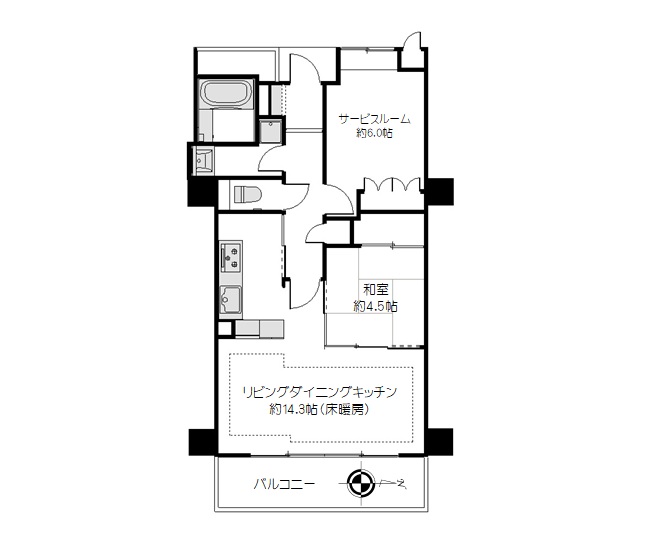 | 間取り | 1LDK+S(LDK約14.3帖 和室4.5帖 サービスルーム約6.0帖) | ||