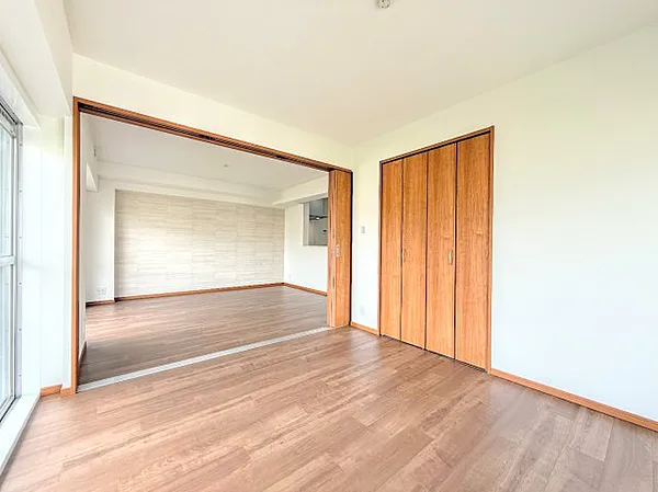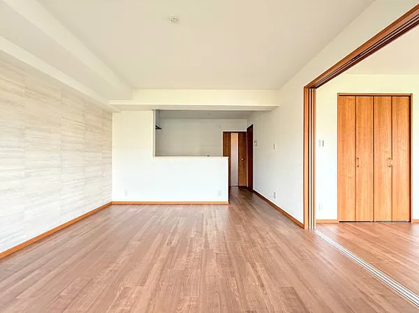 約14畳の広々リビングは、引き戸を開ければさらに開放的に。