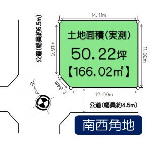 | 敷地面積 | 166.02㎡(実測) | 現況 | 古屋あり(売主の責任・負担にて建物解体後、更地渡し。) |