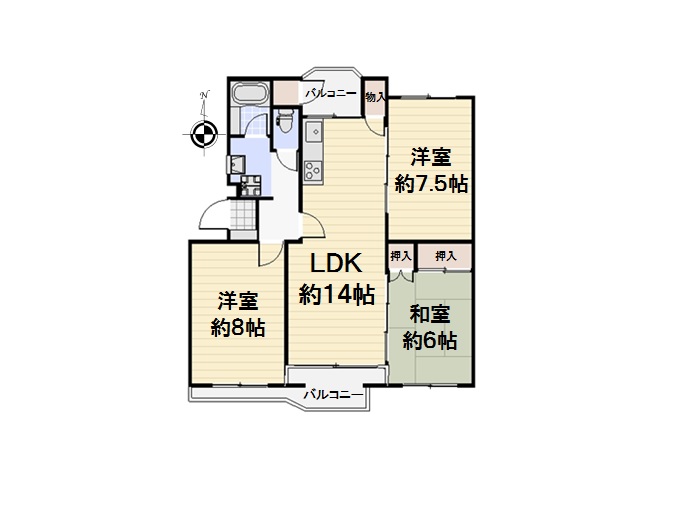 間取り | 3LDK(LDK約14.0帖 洋室約8.0帖 洋室約7.5帖 和室6.0帖) | ||