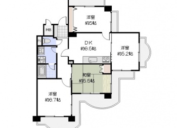 | 間取り | 4DK(DK約6.5帖 洋室約6.7帖 洋室5.2帖 洋室5帖 和室約5.5帖) | ||