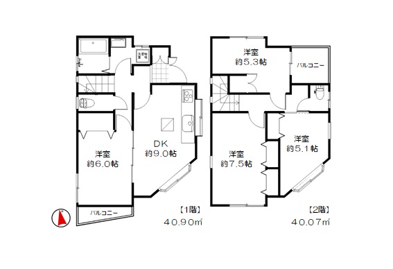 | 間取り | 4DK(DK約9.0帖 洋室約7.5帖 洋室約6.0帖 洋室約5.3帖 洋室約5.1帖) | ||