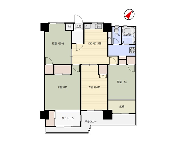 間取り 4DK(DK約7.5帖 和室8帖 洋室約6帖 和室6帖 和室約5帖)